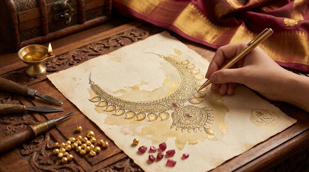We make customised gold jewellery inspired by your design, using traditional craftsmanship, BIS hallmarked gold, and transparent pricing with fair making charges.