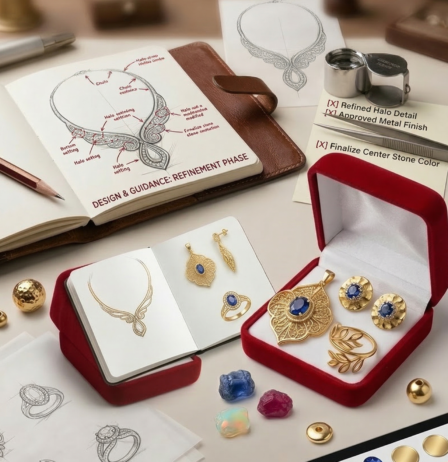 From idea to ornament — every piece is handcrafted by experienced goldsmiths, made exclusively to your design, budget, and occasion.